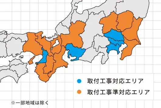 取付工事の対応エリアについては下記の通りになります。詳しくは当社までお問い合わせください。