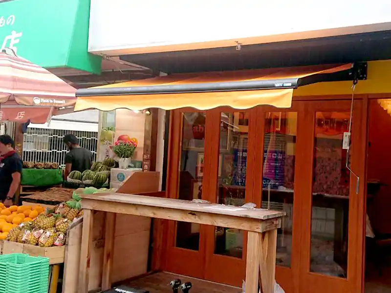 店舗にもご利用頂けます!他社メーカー製品と比べ、エルパティオ・オーニングテントは住宅用に限らず、店舗などでも間口4670mm以下であれば取付可能ですので、住宅のテラス、ベランダ、軒先の日除けや雨除け、店舗などの入口のオーニングとしてもエルパティオは断トツの人気オーニングです。