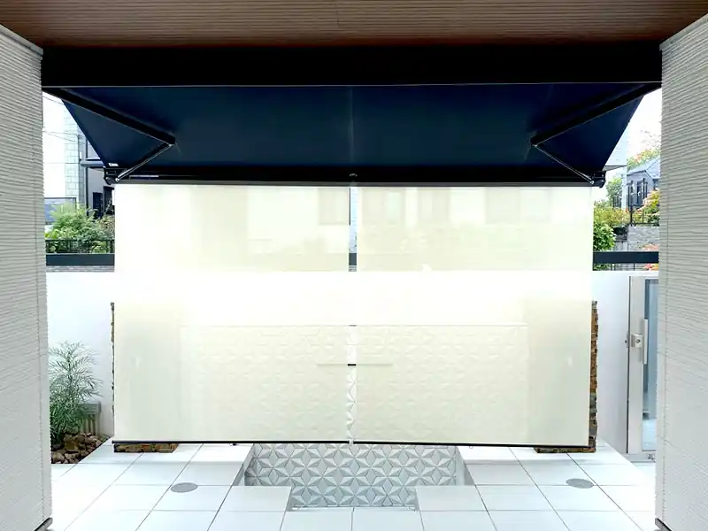 BXテンパルのエルパティオプラスにローリングシェードのオプションが発売開始。前枠機構にローリングシェード(メッシュキャンバス)を取り付ける事で、これまで以上に高い日よけ効果を実現致します。