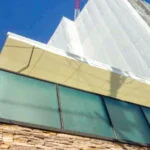 デザインテント(日よけテント)の老朽化による生地の張替え。